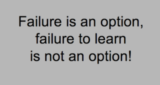 I used to have hanging in my classroom a piece of paper that said “Failure is an option, failure to learn is not an option.” The purpose of this was to help show to my students that they were allowed to make mistakes and even fail along the way.