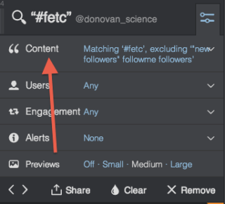 - Add the common words you are seeing in the spam tweets into the “Excluding” box. Typically you will see “new followers” as a common term to filter.
