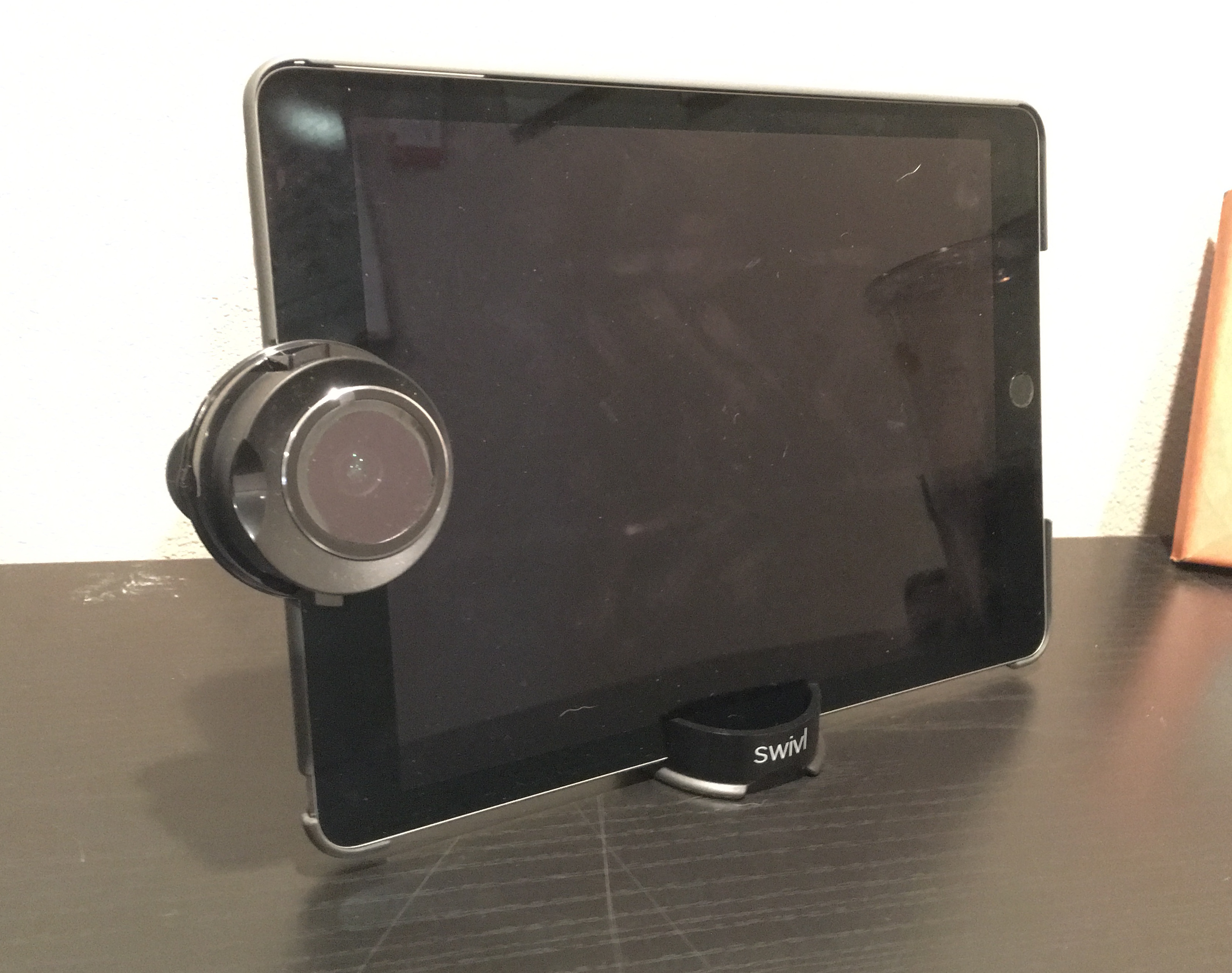 The wide angle lens will allow for more flexible ways to record video. In order to capture the whole classroom or multiple people, if you are doing a close up video, you would have to move the iPad farther away. There is a slot on the back of the case that allows the lens to quickly attach and stay in place, which is important for when the Swivl robot starts to swivel. The wide angle lens allows you to capture more of the room without having to put it in the way back of the classroom.