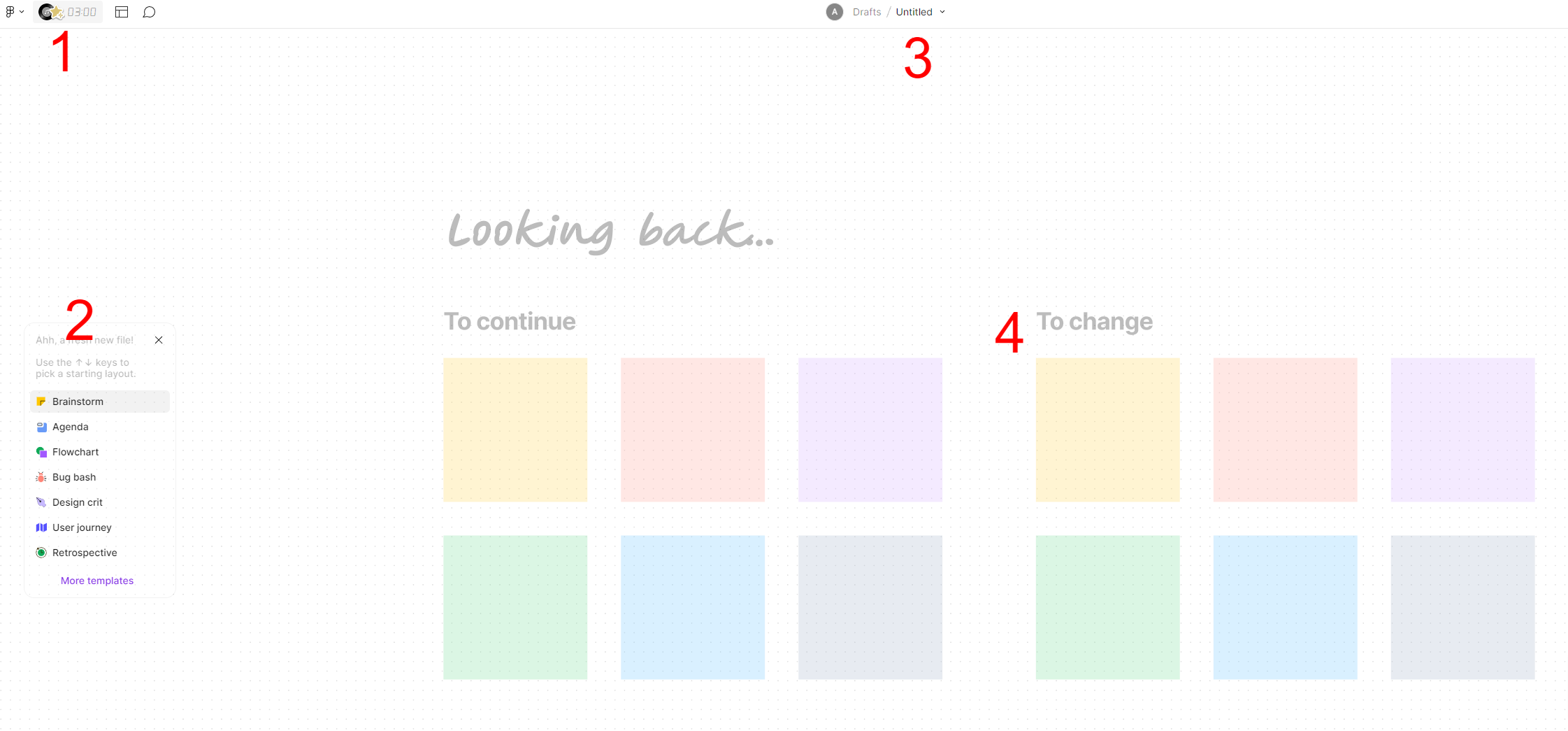 One important step is to change the title (3) of your Figjam so you know what this Figjam is. If you are like me, you will start creating a ton of Figjams and you do not want to lose which is which.